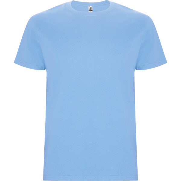 Camiseta tubular unisex de adulto de manga corta. Cuello redondo con elastano. Costuras laterales en tallas de niño. Impresión NO incluída. (Consulte más abajo)