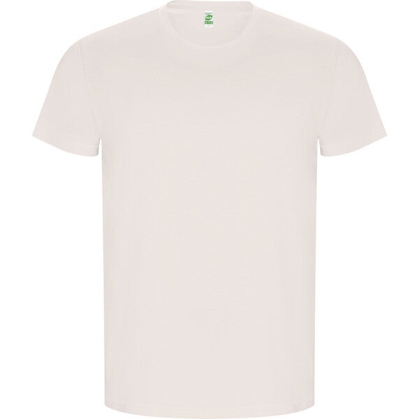 Camiseta infantil unisex tubular de manga corta en Algodón Orgánico. Cuello redondo con Rib 1x1. Costuras decorativas en