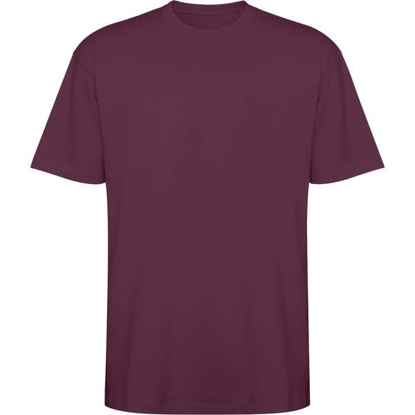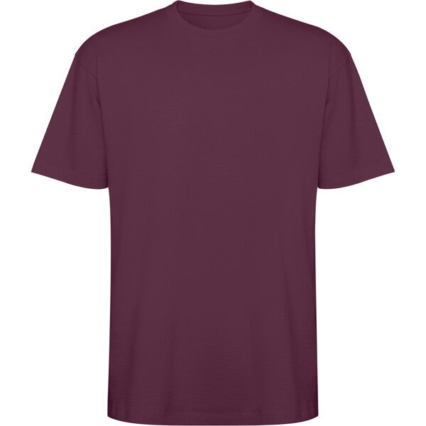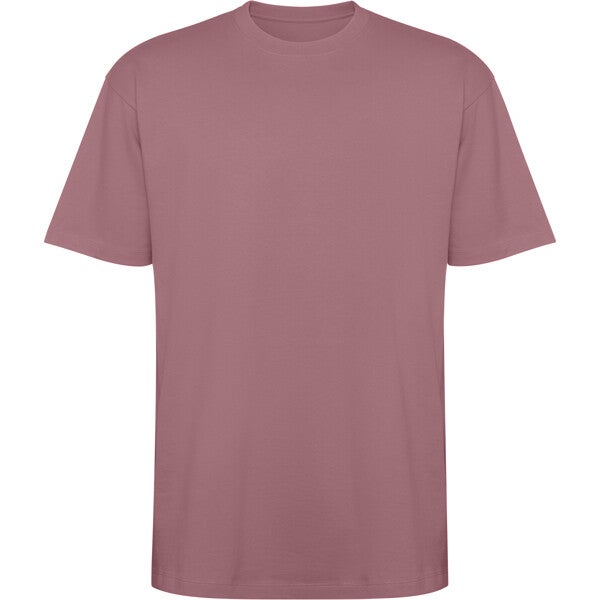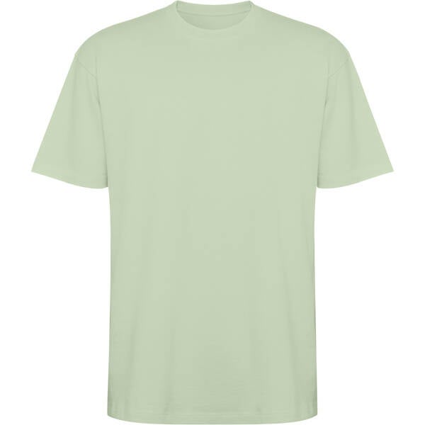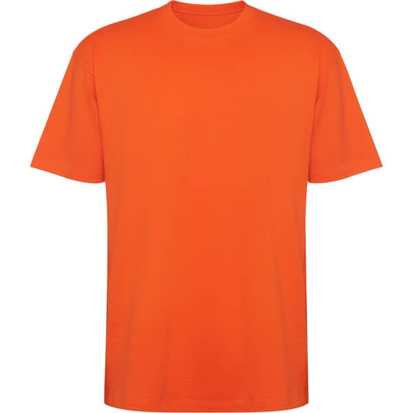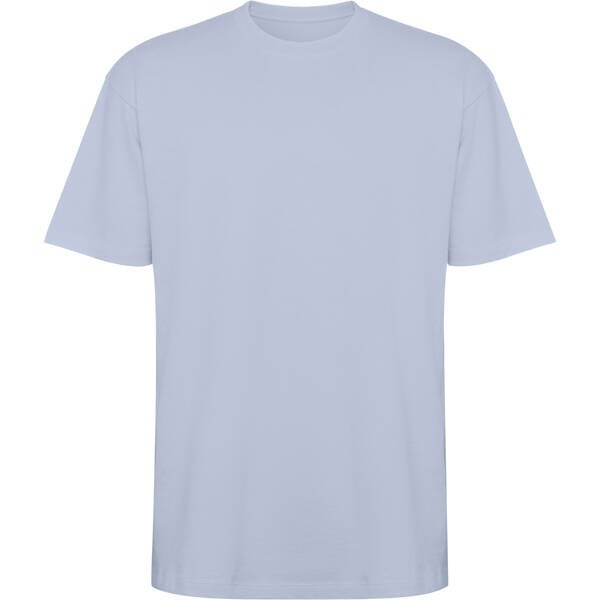 Camiseta unisex de manga corta estilo oversize. Cuello redondo ribeteado en canalé 2x1 con cubrecosturas a tono. Costuras laterales. Doble costura ancha en manga y bajo. Impresión NO incluída. (Consulte más abajo)