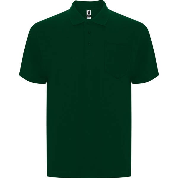 Polo unisex de manga corta con bolsillo en pecho izquierdo. Cuello y ribete de manga en canalé 1x1 con detalle en