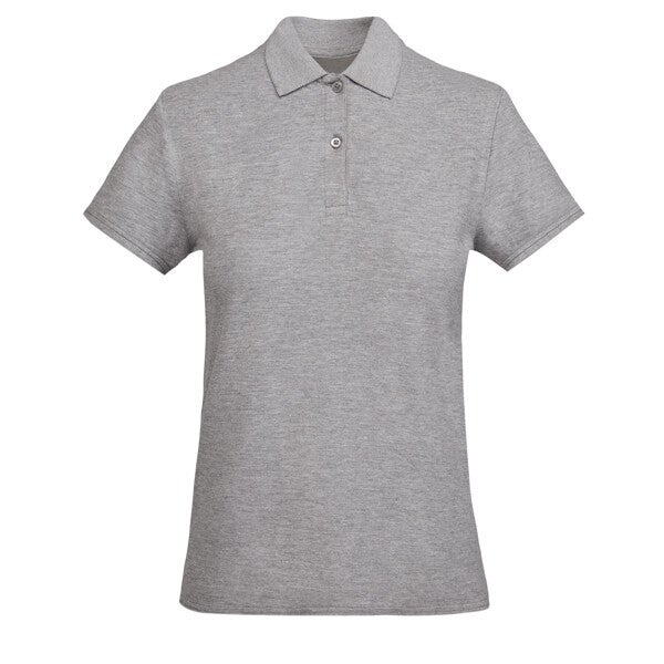 Polo de mujer entallado de manga corta en algodón orgánico certificado OCS. Cuello y ribete de mangas en canalé 1x1. Tapeta con 2 botones. Cubrecosturas reforzado en cuello. Aperturas laterales en el bajo. Impresión NO incluída. (Consulte más abajo)