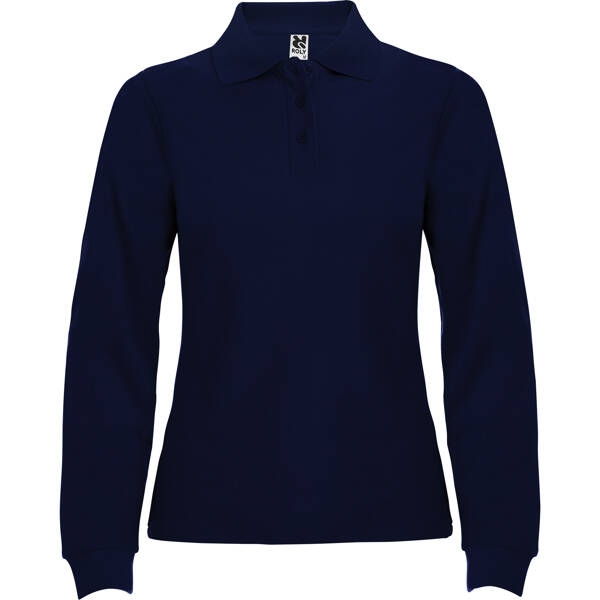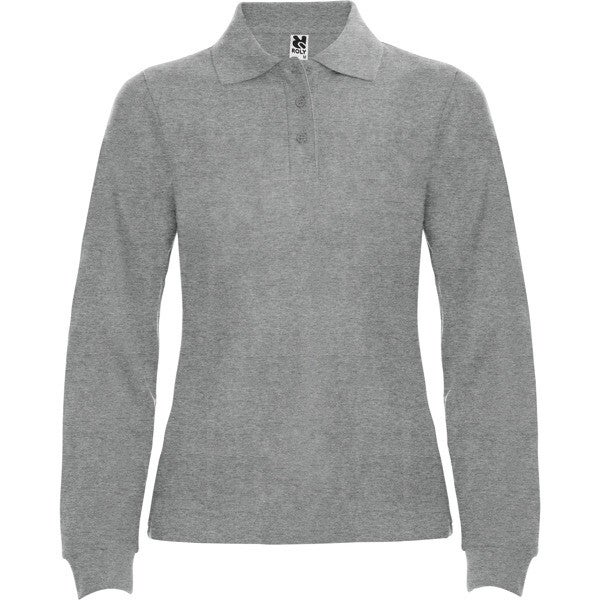Polo de mujer de manga larga con cuello y bocamangas acanalado, tapeta de 3 botones y puños canalé 1x1 con elastano. Cubrecosturas reforzado en cuello, corte entallado. Impresión NO incluída. (Consulte más abajo)