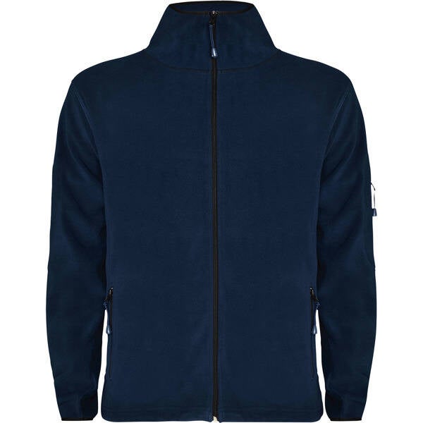 Sudadera polar perfecta para el día a día, con cuello alto y manga larga con ribetes en contraste. Bolsillo con cremallera en manga izquierda y cremallera central, ambas en contraste. Costuras en lateral y de costadillo. Codera en el mismo tejido. Impresión NO incluída. (Consulte más abajo)