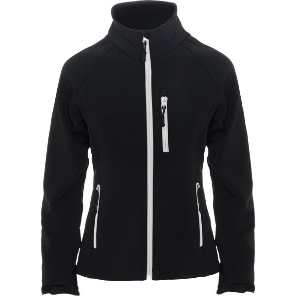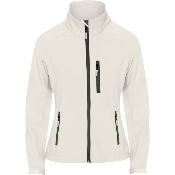 Cazadora Softshell de mujer compuesta por 2 capas con cremallera invertida efecto sellado, con protector de barbilla combinada y