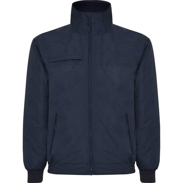 Chaqueta unisex acolchada impermeable. Cuello alto con interior forrado en micropolar. · Cremallera central inyectada al tono con protector de barbilla y tirador. Un bolsillo en el pecho y dos laterales con cremallera y solapa. Puños ajustables en canalé 1x1. Acceso interior para marcaje. Impresión NO incluída. (Consulte más abajo)