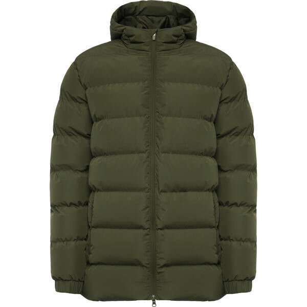 Parka unisex acolchada. Capucha fija con visera. Cremallera frontal a tono con doble tirador y protector de barbilla. Puños elásticos. Dos bolsillos laterales con cremallera. Acceso interior para marcaje. Impresión NO incluída. (Consulte más abajo)