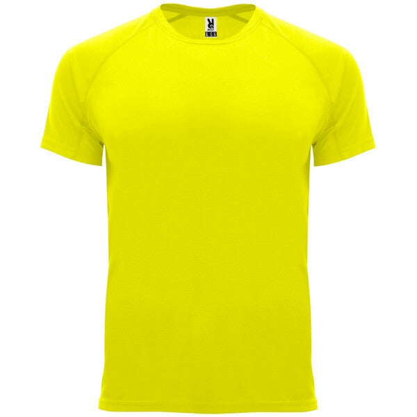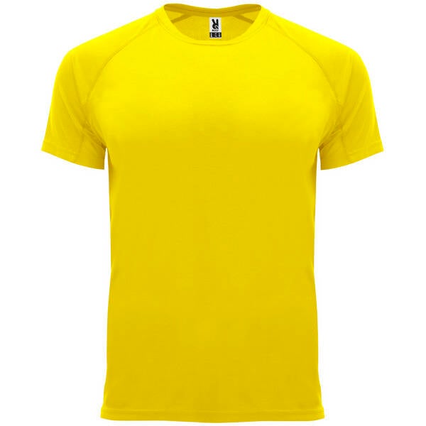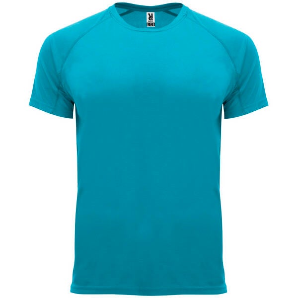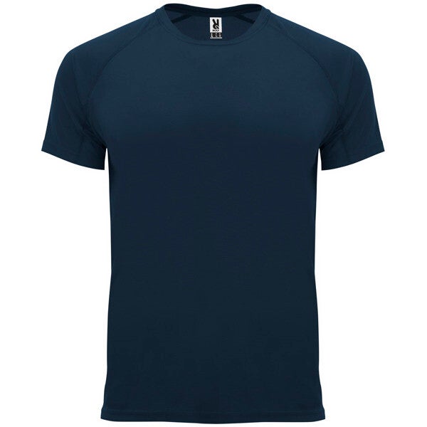 Camiseta técnica infantil de manga corta ranglán. Cuello redondo con cubrecosturas a tono. Paneles inferiores en mangas. Remallado a tono en sisa y panel de manga. Tejido CONTROL DRY.. Impresión NO incluída. (Consulte más abajo)