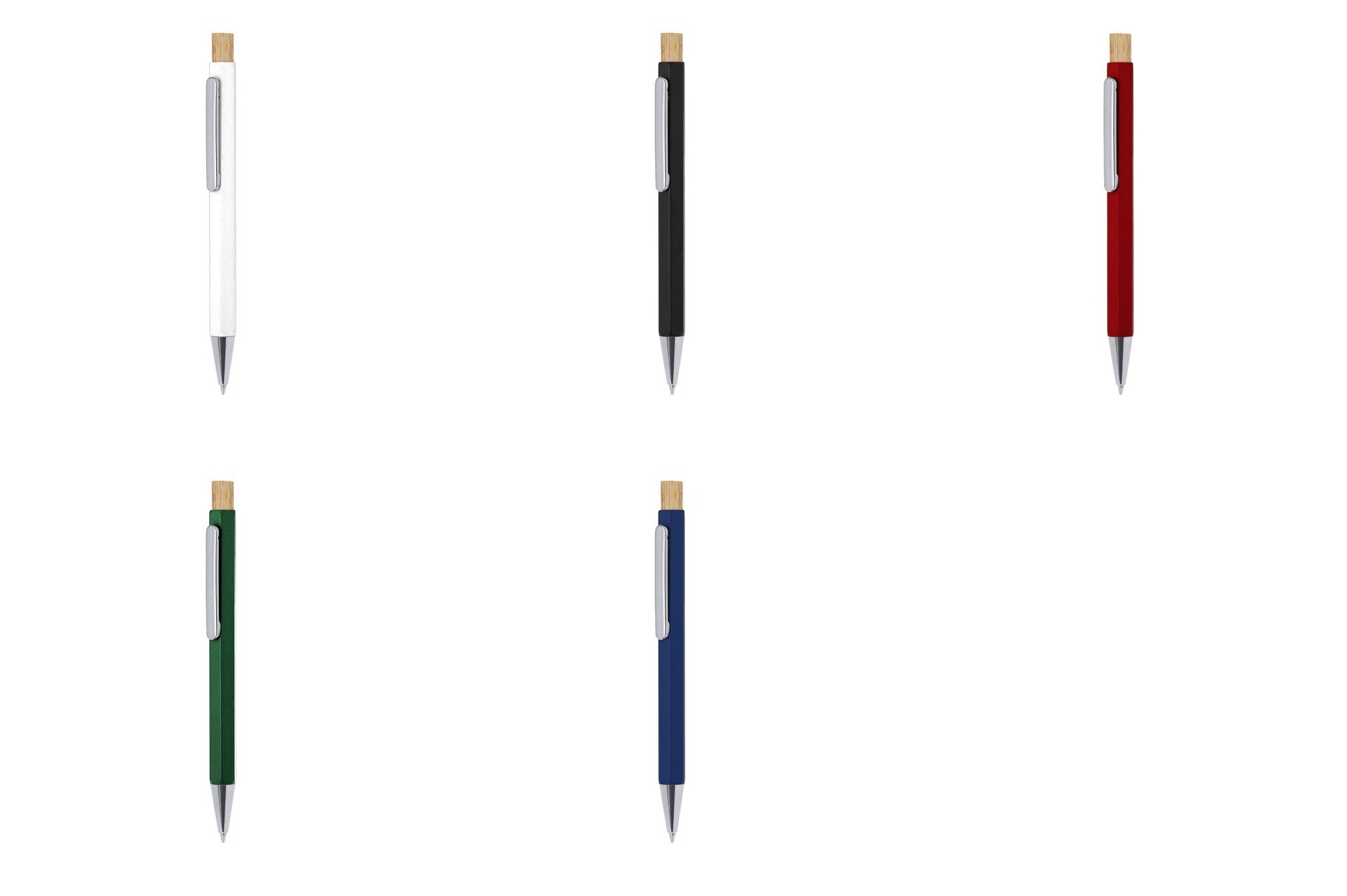 Elegante bolígrafo fabricado en Aluminio Reciclado Certificado* con grabado en láser incluído. Cuerpo en distinguida forma hexagonal, con clip y punta cromadas. De mecanismo pulsador fabricado en bambú y de tinta azul. Con distinguido logo de Aluminio Reciclado marcado en la caña. Disponible en 5 colores (puedes elegir colores surtidos dentro de un mismo pedido por el mismo precio, sin cambiar el logo de la impresión).
