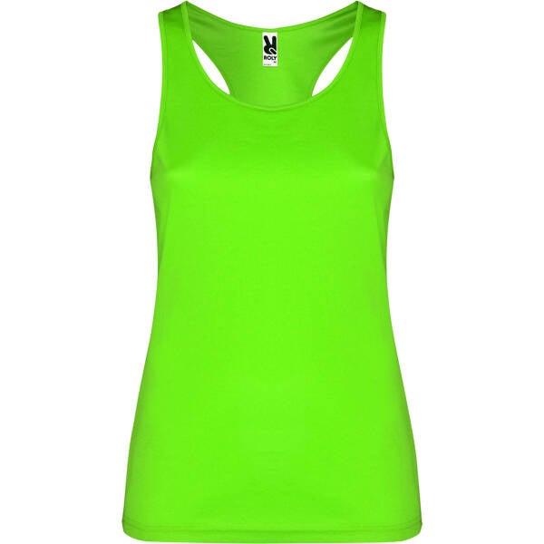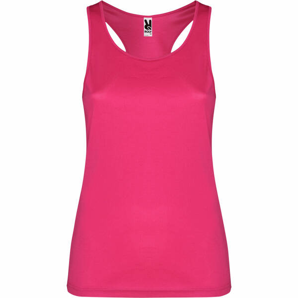 Camiseta técnica de tirantes entallada transpirable. Espalda nadadora con escote y sisas ribeteado. Impresión NO incluída. (Consulte más abajo)